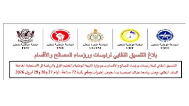تنسيق رؤساء المصالح والأقسام لقطاع التعليم يصعّد احتجاجاته ويعلن إضرابا وطنيا لثلاثة أيام