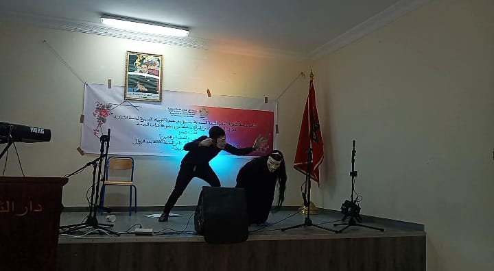 وافتتحت الأمسية الإحتفالية، بآيات بينات من الذكر الحكيم، ثم النشيد الوطني، لينطلق تقديم فقرات متنوعة، من بينها قطع مسرحية هزلية، سلطت الضوء عن العنف ضد المرأة، التحرش الجنسي، وزواج القاصرات، ثم وصلات غنائية، وذلك من إعداد وتقديم منخرطي جمعية الأفق.