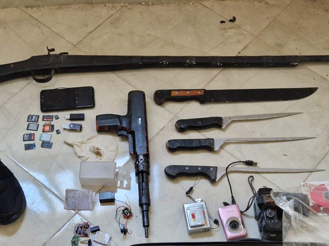 وأشار البلاغ إلى أن عمليات التفتيش المنجزة داخل الغرفة التي يشغلها المشتبه فيه أسفرت عن حجز أسلحة وإصدارات ذات طبيعة متطرفة، وهي عبارة عن الآلة الثاقبة المستخدمة في الاعتداء، وقماش أسود يحمل ما يسمى “راية” تنظيم داعش الإرهابي، وبندقية تقليدية تعمل بالبارود، وأربع أسلحة بيضاء من أحجام مختلفة، وتسع قطع حديدية حادة، فضلا عن غلاف جلدي مخصص للمسدسات الفردية.