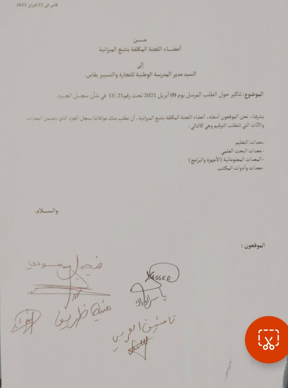 السادة الأفاضل، علاقة بالموضوع أعلاه، نخبركم أن المدرسة الوطنية للتجارة والتسيير بفاس، تعرف فسادا ماليا وإداريا لم يسبق له نظير، والمتمثلة في النقط التالية: