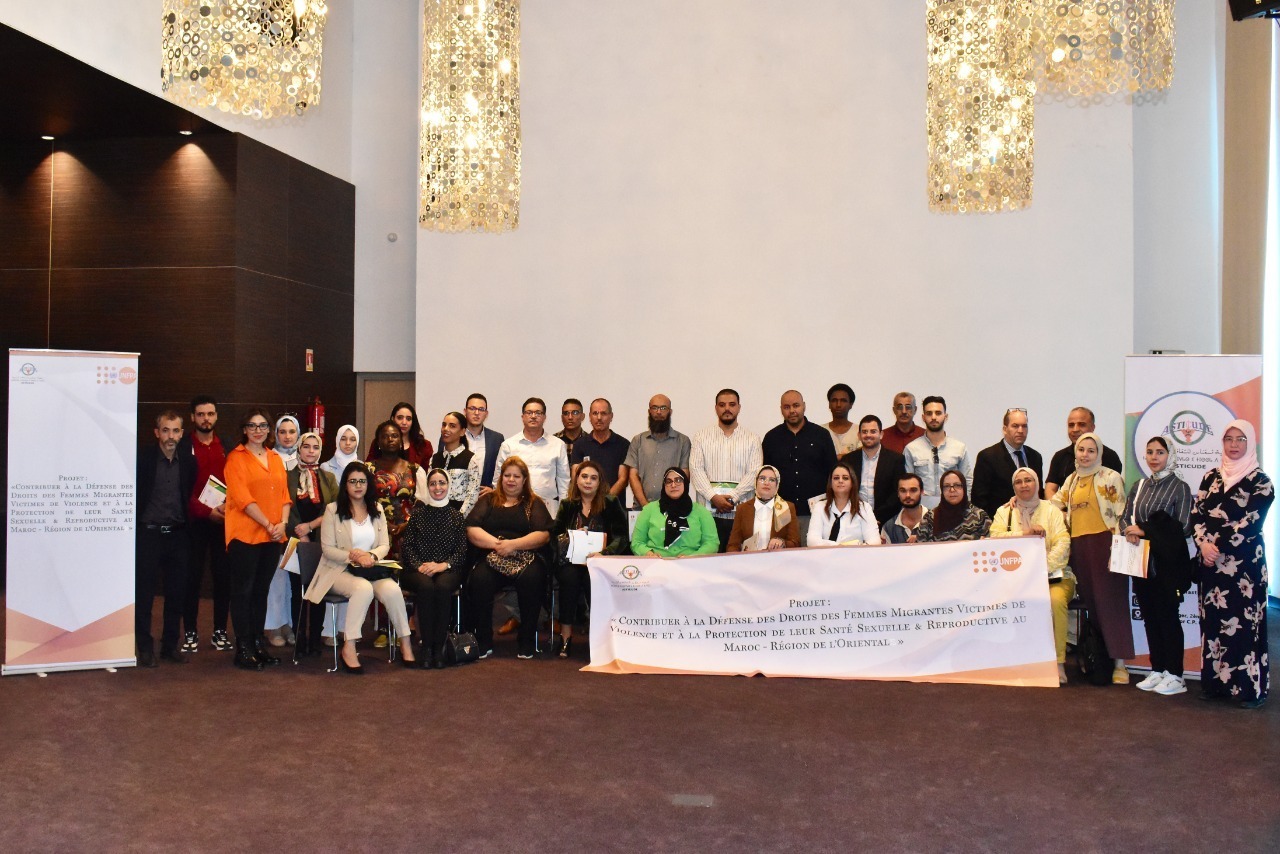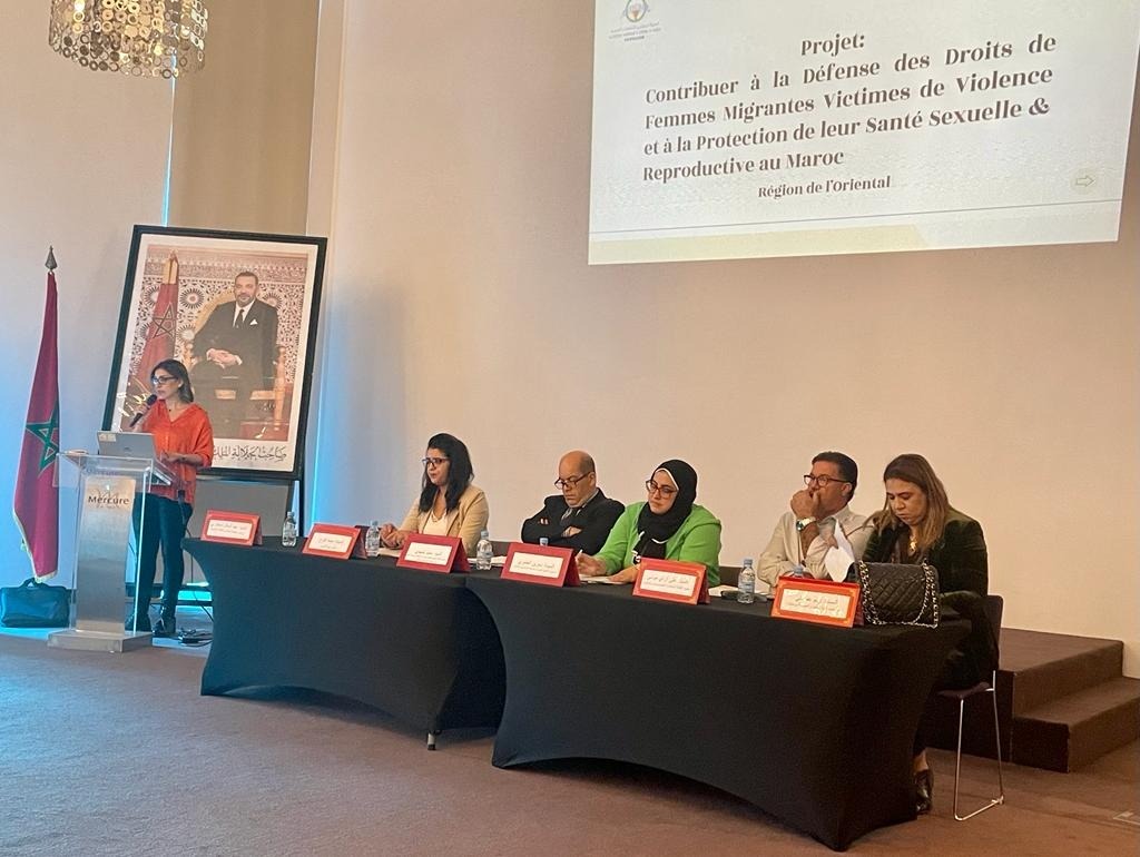 وذلك من أجل إعطاء الانطلاقة لأول ندوة تحسيسية حول حقوق النساء المهاجرات داخل إطار مشروع ”المساهمة في الدفاع عن حقوق النساء المهاجرات ضحايا العنف وحماية صحتهن الجنسية والإنجابية” (DDFM-PSSR) الممول من طرف صندوق الأمم المتحدة للسكان بالمغرب FNUAP، حيث مباشرة بعدها تم الإعلان عن بداية دورتين تكوينيتين تمتدان طيلة أيام 25-26 و27 أكتوبر 2022، لفائدة اطر قطاع الصحة بالإقليم والنواحي. حيث افتتحت السيدة ممثلة جمعية ثسغناس للثقافة والتنمية نيابة عن الرئيس، التكوين المتعلق بحماية الصحة الإنجابية والجنسية للنساء المهاجرات وأهمية التقليص من أخطار الأمراض المتنقلة والذي يدخل ضمن إطار مشروع(DDFM-PSS)، بينما افتتحت السيدة ممثلة الوكالة البلجيكية للتنمية بالمغرب enabel- الدورة التكوينية الثانية لفائدة فوج ثاني من أطر الصحة في إطار مشروع “تنزيل سياسات الهجرة على المستوى الجهوي- جهة الشرق « DEPOMI-ORIENTAL » حول الاستراتيجيات الوطنية للصحة والهجرة وأهمية تيسير ولوج المهاجرين/ات نحو الخدمات الصحية ونحو خلايا النساء والأطفال ضحايا العنف التابعة للمندوبية الإقليمية للصحة والحماية الاجتماعية بالناظور.