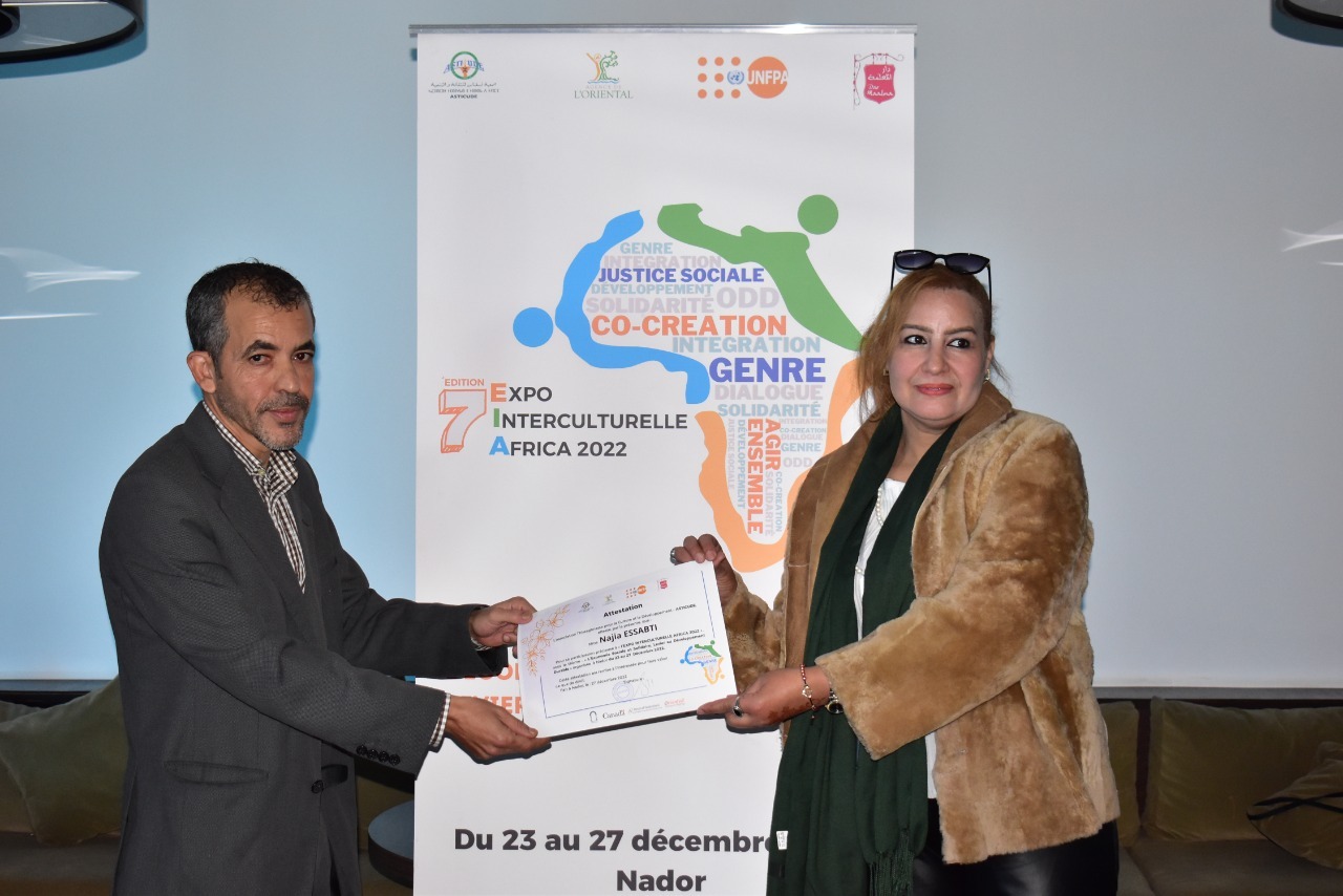 وتم خلالها(الندوة) عرض نتائج دراسة حول العنف ضد النساء والأطفال بإقليم الناظور وقراءة التوصيات والتي تندرج في اطار مشروع :” المساهمة في الدفاع عن حقوق النساء المهاجرات ضحايا العنف والعناية بصحتهن الجنسية بالمغرب –جهة الشرق- والتي قامت بها الجمعية وبدعم من صندوق الأمم المتحدة للسكان، بعد ذلك تم توزيع شواهد المشاركة جميع العارضات المشاركات في المعرض.