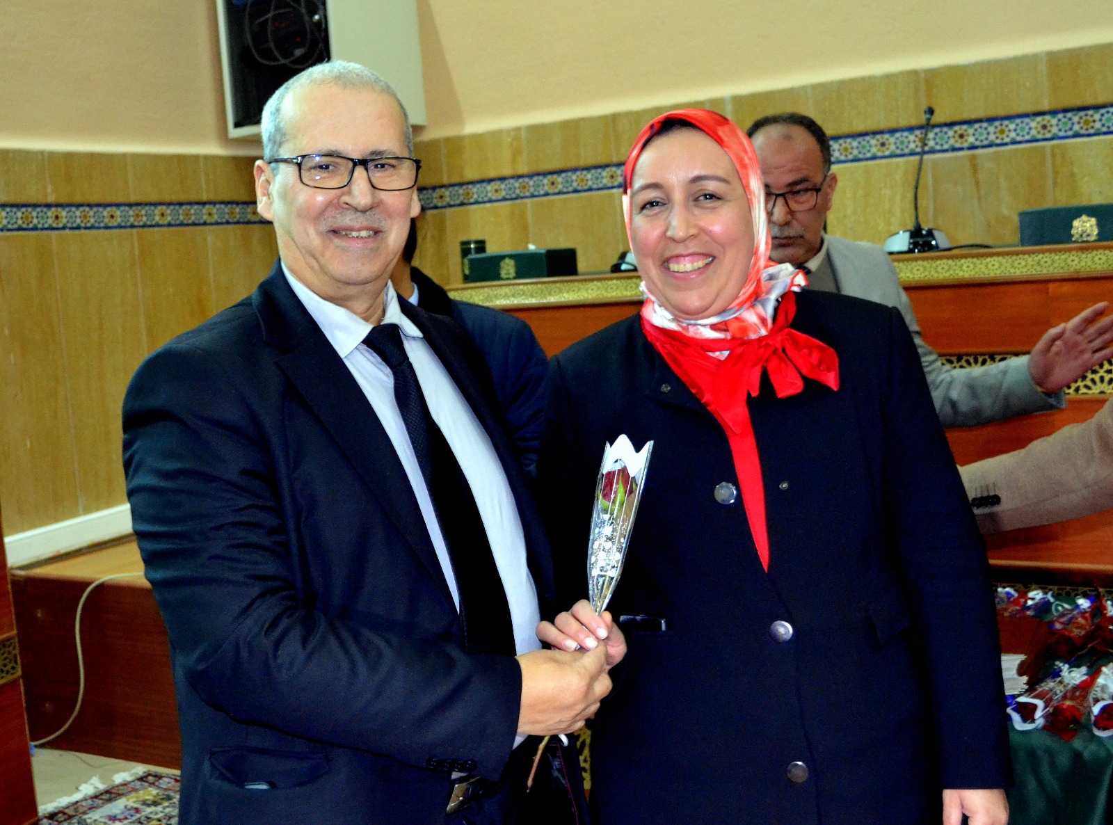 تخلل هذا الحفل كلمة تنويه وشكر لكل من الرئيس الأول لمحكمة الإستئناف محمد صقلي حسيني والوكيل العام محمد أقوير، كانت مناسبة للاعتراف بالمجهودات الجبارة التي تبذلها نساء العدل خدمة للوطن حتى في اللحظات الصعبة التي تمر منها البلاد، مشيدا بتفانيهن واخلاصهن وبالخدمات الجليلة التي يقدمنها في سبيل الرقي بمستوى العمل بهذه الدائرة سعيا لخدمة قضايا المتقاضين وتحقيقا لمبدأ الحكامة والنجاعة القضائية، واختتم الرئيس الأول كلمته مهنئا جميع النساء العاملات بنفوذ الدائرة القضائية (من مستشارات ومحاميات والموظفات وعاملات النظافة، والنساء العاملات بقطاعات العدول والموثقات والمفوضات القضائية…) وداعيا لهن بالمزيد من التقدم والعطاء على ذات المسار.