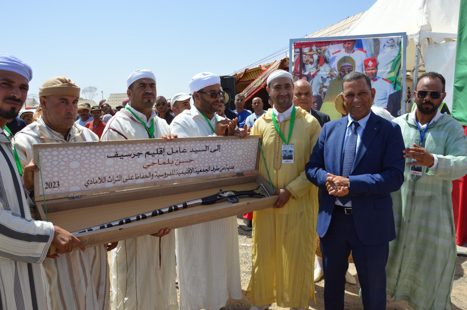 وفي إطار برنامج تخليد ذكرى ثورة الملك والشعب وعيد الشباب، ترأس عامل الإقليم حفل اختتام فعاليات الدورة الأولى لمهرجان التبوريدة بجرسيف، والمنظم ما بين 18 و20 غشت الجاري، من طرف الجمعية الإقليمية للفروسية التقليدية والحفاظ على التراث اللامادي تحت شعار “تراث أجدادنا وإرث أولادنا”، بالإضافة إلى زيارة معرض للفنان التشكيلي عبد القادر بلبشير الذي يعرض مجموعة من اللوحات الفنية.