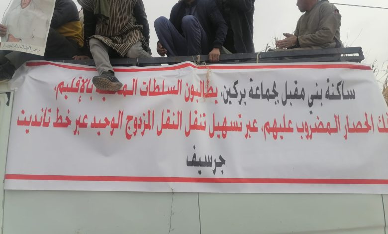 طالبت ساكنة بني مقبل بجماعة بركين التابعة ترابيا لإقليم جرسيف، بفك الحصار المفروض على النقل المزدوج، وذلك من خلال وقفة احتجاجية نظمتها مساء هذا اليوم الاثنين 15 يناير الجاري، أمام مقر عمالة الإقليم.