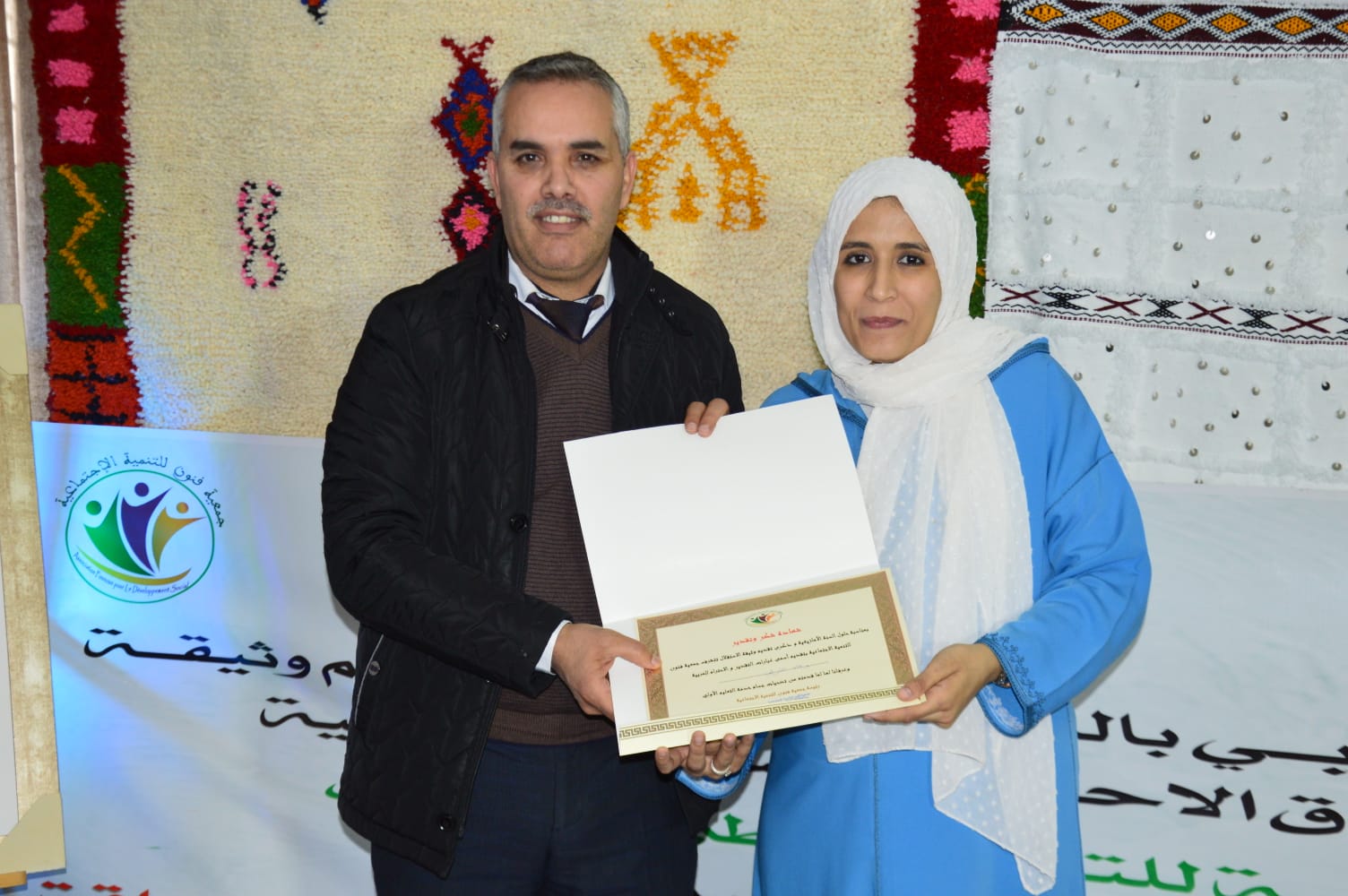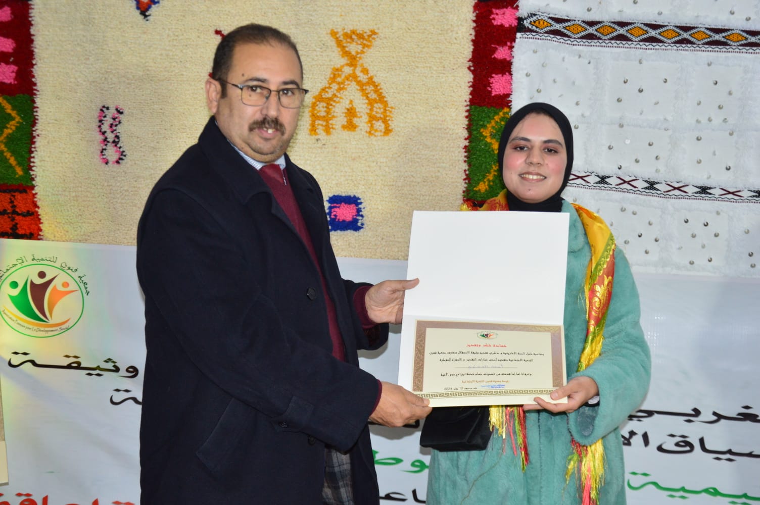 كما تم خلال هذا الحفل توزيع عدد من الشواهد التقديرية على مؤطرات الجمعية وعدد من والمساهمين في إنجاح أنشطتها وتحقيق أهدافها، ونظمت أيضا معرضا للمنتوجات اليدوية للمستفيدات من المركز، وابداعاتهن في إنتاج الزريبة الوراينية ومختلف الأعمال اليدوية إضافة إلى تقديم أطباق تقليدية بمناسبة ذكرى رأس السنة الأمازيغية.
