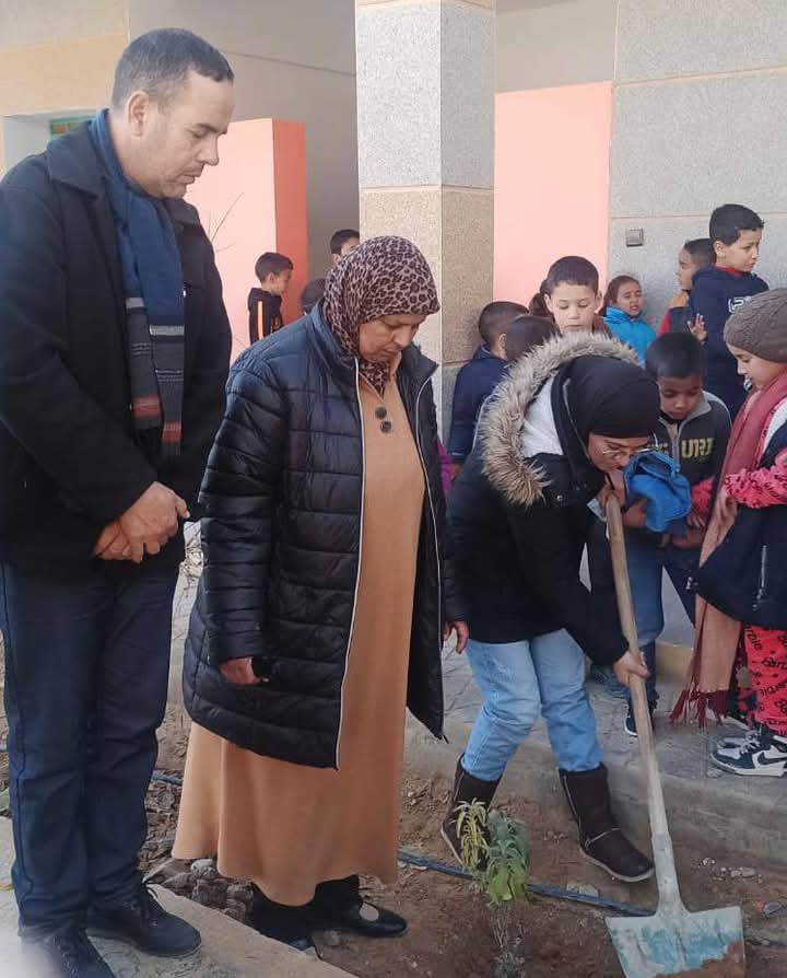 وشارك تلاميذ وتلميذات المؤسسة، وجميع أطرها، ثم ممثلات الخلية السالفة الذكر، في عملية التشجير بساحة المدرسة، في إطار العناية بالبيئة وخلق فضاء أخضر وتزيين الفضاء المدرسي.