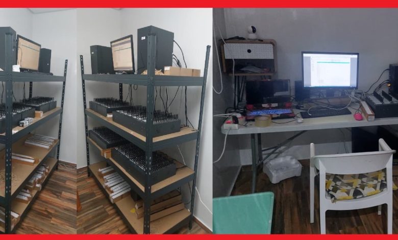 وقد أسفرت عملية الضبط والتفتيش المنجزة بداخل منزل يستغله المشتبه فيهم عن حجر مجموعة من الحواسيب الثابتة والمحمولة وكمية مهمة من الشرائح الهاتفية، علاوة على أجهزة إلكترونية سلكية ولاسلكية ومعدات معلوماتية تستعمل في هذا النشاط الإجرامي.