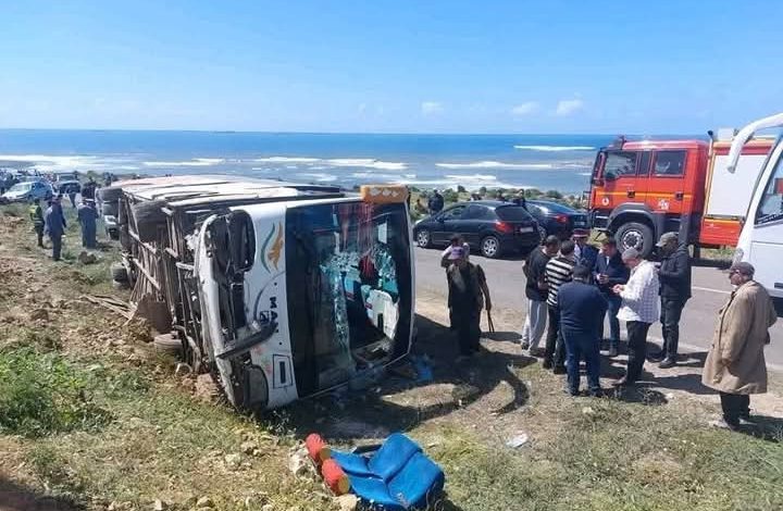 إصابة 7 أشخاص في انقلاب حافلة لنقل المسافرين بجماعة أولاد عيسى بإقليم الجديدة