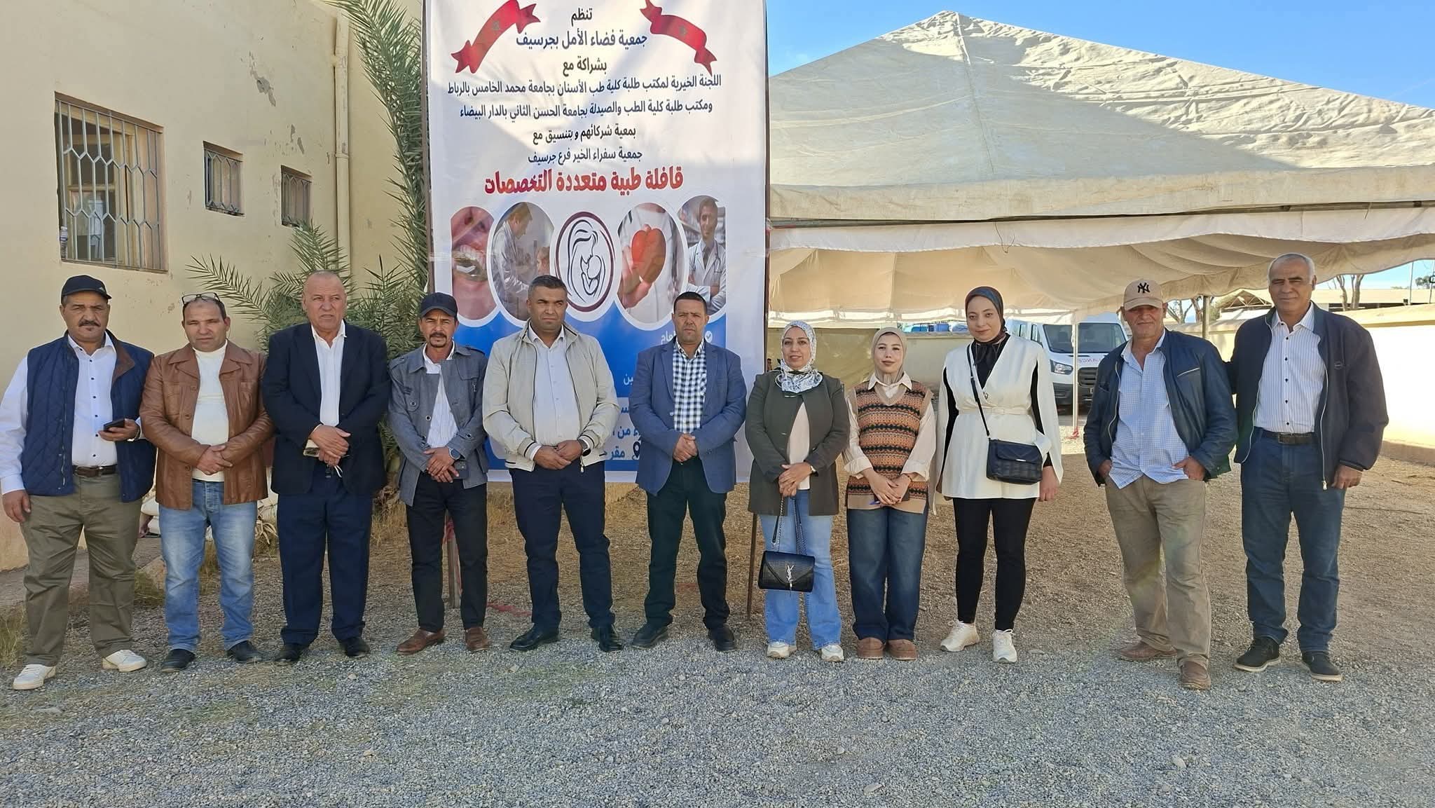 نظمت جمعية فضاء الأمل بجرسيف، يوم أمس السبت 15 نونبر الجاري، قافلة طبية متعددة التخصصات بجماعة تادرت، وذلك تخليدا لعيد الاستقلال المجيد، وبشراكة مع اللجنة الخيرية لمكتب طلبة كلية طب الأسنان بجامعة محمد الخامس بالرباط، ومكتب طلبة كلية الطب والصيدلة بجامعة الحسن الثاني بالدار البيضاء، وبدعم مجموعة من الشركاء والمتطوعين.