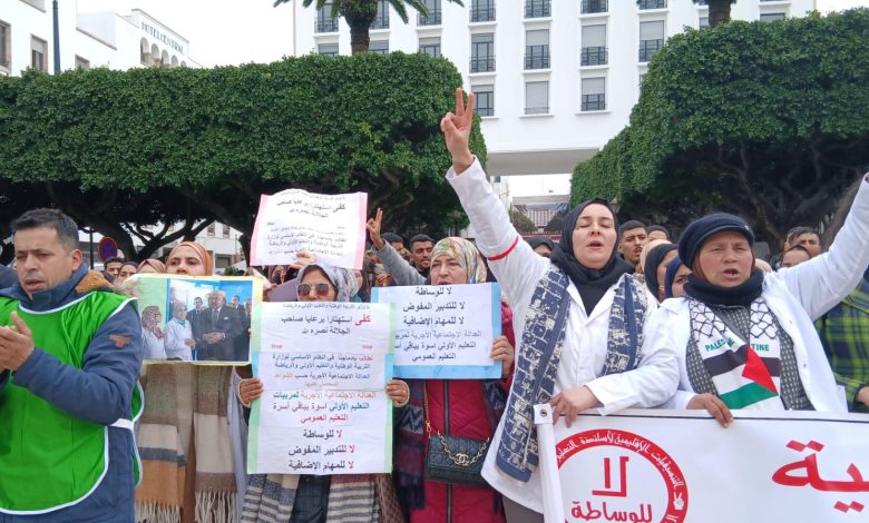 ورفع المحتجّون شعارات تعبر عن رفضهم لما وصفوه بـ”الهشاشة المهنية” التي يعانون منها، في ظل عقود تدبير مفوض، وضعف الأجور، وغياب الاستقرار الوظيفي، رغم الأدوار التربوية التي يضطلعون بها داخل منظومة التعليم.