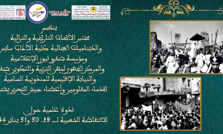 ينظم مختبر الأبحاث التاريخية والتربوية والديناميات المجالية بكلية الآداب والعلوم الإنسانية سايس – فاس، يوم 31 يناير 2026، ندوة علمية بصفرو حول موضوع “الانتفاضة الشعبية لأحداث 29 و30 و31 يناير 1944”، وذلك بالمركز الجهوي لمهن التربية والتكوين بصفرو.